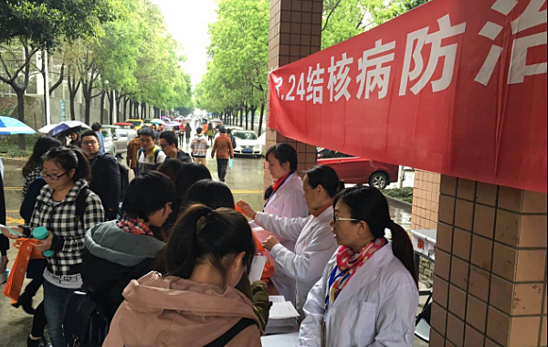 3月24日,校医政科协同校医院在学校二平台设点,为全校师生发放防治结核病宣传资料2000余份,志愿者向前来咨询的师生进行结核病防治知识的宣传讲解。