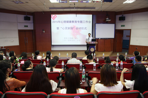 5月20日下午,我校2015年心理健康教育专题工作会暨“心灵家园”启动仪式在三教A座101举行。校党委副书记毛克强,党委宣传部、校团委、学生工作处相关负责人,各二级学院分管书记、学办主任、专职辅导员有学生干部代表,“心灵家园”全体教师、学生以及大学生心理健康协会全体成员等参加了本次活动。