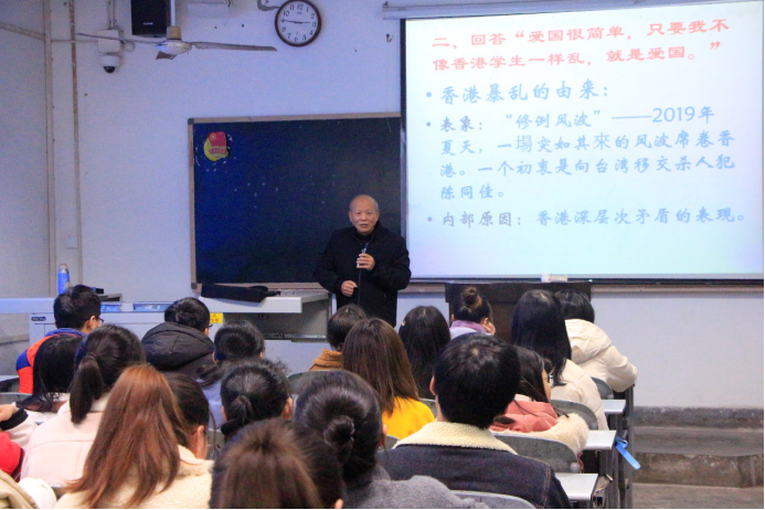 11月27日下午两点三十分在一教205,宜宾市关工委宣讲团退休干部吴开祥同志受邀来到法学院开展了一次爱国分享交流会。18级部分学生参加了此次座谈。
