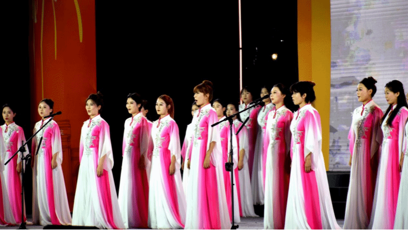 第二篇章“赤心铸魂·薪火永传”主打文化传承与精神赓续。合唱《舟中晓望》展现了对传统文化的历久弥新;藏族舞《党心》用豪迈舞姿与洁白哈达,诉说藏族人民为代表的各少数民族对党的感恩之情;吟诵《鹿鸣》重现“呦呦鹿鸣,食野之苹”的礼乐温情,彰显中华传统文化底蕴;新民乐合奏《云境曲影》融合传统民乐与西洋乐器,绽放东西方艺术碰撞的独特魅力;歌伴舞《幸福中国一起走》以饱满热忱歌颂新时代,展现老一辈教育工作者的昂扬风貌,全方位传递文化自信与时代精神。