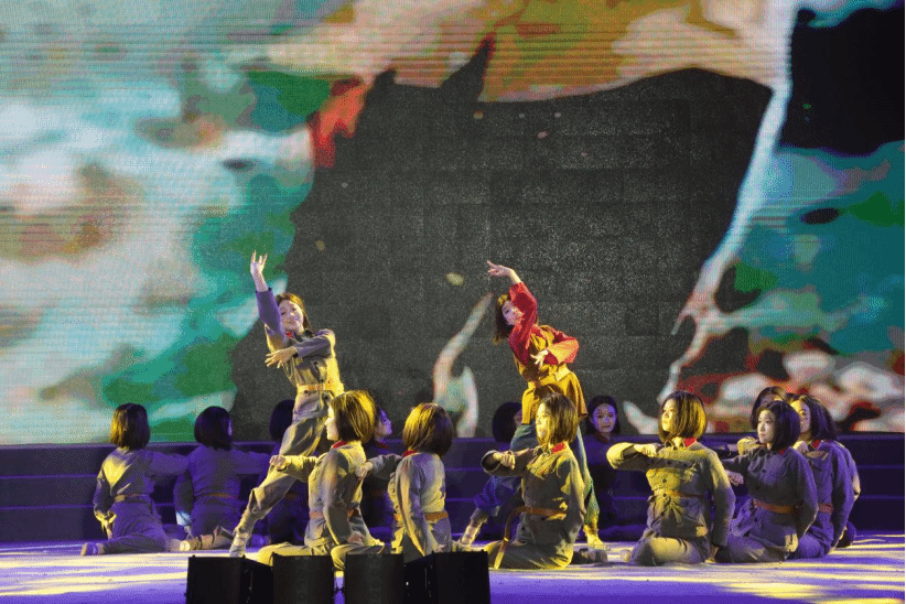 第一篇章“烽烟铭史·山河永念”聚焦历史回望与英烈缅怀。舞蹈《四渡传薪火》以精湛编排再现革命火种在艰难中传承的壮阔历程;《风雪赵一曼》用柔美却坚毅的肢体语言勾勒巾帼英雄的铁骨柔情;情景剧诗朗诵《这束光》穿透时空彰显信仰力量;街舞《川军》以现代韵律碰撞红色主题,让铁血忠魂焕发新时代光彩;歌舞表演《石榴花开耀中华》表达了五十六个民族团结一致,欣欣向荣的美好画面。一个个节目让观众在艺术熏陶中铭记烽火岁月、致敬革命先辈。