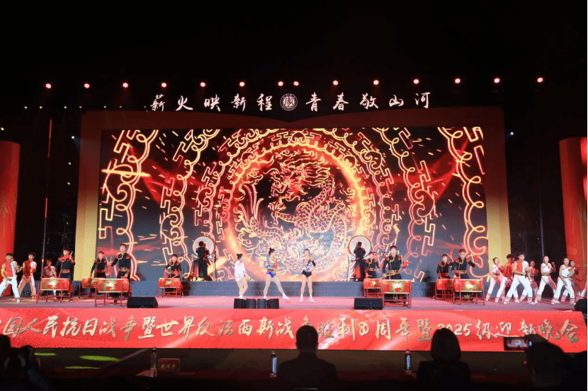 山河无恙,岁月峥嵘;薪火相传,弦歌不辍。为深切缅怀抗战先烈的丰功伟绩,传承红色基因,让青年学子在回望历史中坚定理想信念、续写时代华章、11月9日晚上19:00,“薪火映新程 青春敬山河”——宜宾学院纪念中国人民抗日战争暨世界反法西斯战争胜利80周年暨2025级迎新晚会在临港校区足球场隆重举行。党委副书记蒋道平、党委常委、副院长王如渊、副院长覃凤清、党委常委、副院长杨强、党委常委、宣传部部长陈世海等校领导出席,晚会特邀中国建设银行宜宾分行党委委员、副行长张贵才等嘉宾以及离退休老教师、二级学院负责人等与师生代表齐聚一堂,在光影流转与旋律悠扬中,共同回望峥嵘岁月、感悟精神力量,沉浸式感受这场兼具思想深度与艺术魅力的文化盛宴。