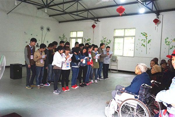 为弘扬尊老爱老的传统美德,培育和践行社会主义核心价值观,日前,矿安学院、体育学院、音表学院、教科学院的青年志愿者团队到宜宾市翠屏区盐坪坝福利院共同开展了“与彼共享,峥嵘岁月”慰问福利院孤寡老人和残疾儿童。