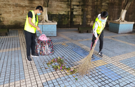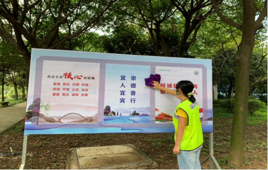 志愿者们在宣传活动结束后,随即在校园内开展了“干干净净迎国庆”集中志愿服务活动。他们怀着对学校的热爱与对国庆的祝福,积极参与分区域卫生清洁工作,清除校园死角垃圾,并对墙面宣传栏逐一擦拭。