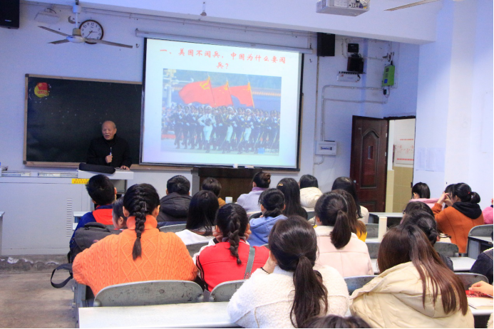 11月27日下午两点三十分在一教205,宜宾市关工委宣讲团退休干部吴开祥同志受邀来到法学院开展了一次爱国分享交流会。18级部分学生参加了此次座谈。