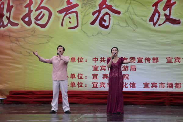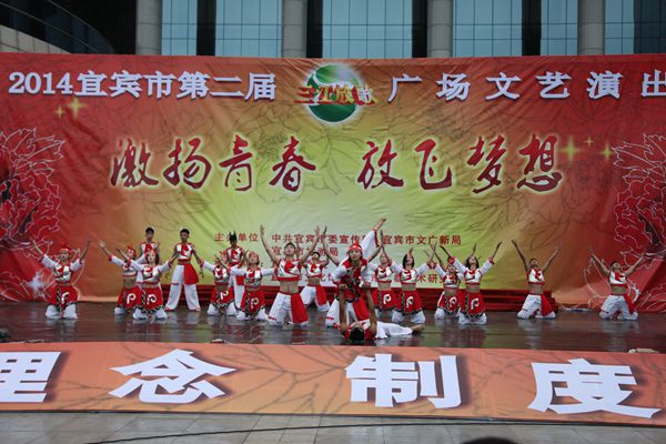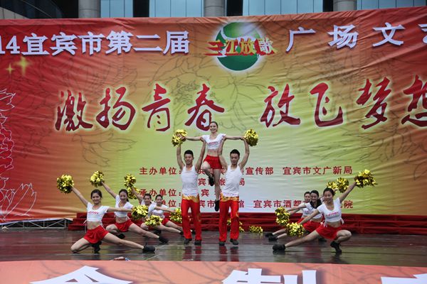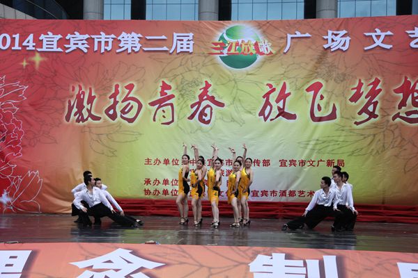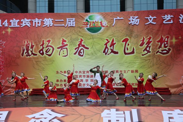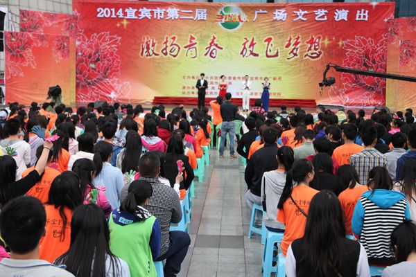 4月25日下午,2014年宜宾市第二届“三江放歌”广场文艺演出宜宾学院专场在市文化科技中心广场举行。 本场广场文艺演出由宜宾市委宣传部、市文广新局、市旅游局联合主办,我校具体承办,市文化馆、市酒都艺术研究院共同协办。