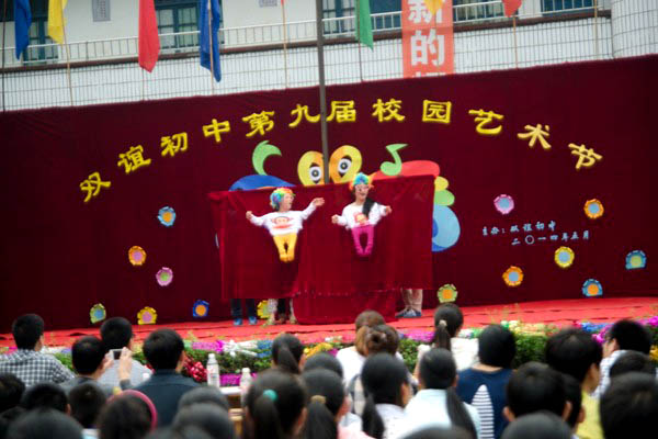随后,志愿者们和双谊初中的同学们一起为全校师生及学生家长表演了精彩的节目,赢得了在场师生和父老乡亲的阵阵掌声。