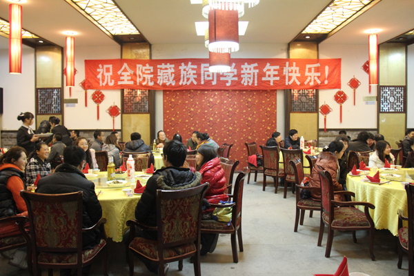 2月22日是2012年藏历新年,当天中午,党委书记屈川,党委副书记、纪委书记郭洪亮,党委副书记毛克强,副校长孟林、鲁飞等领导与全校藏族学子在西苑餐厅欢聚一堂,共同庆祝新年的到来。副校长鲁飞主持仪式,并宣读了在外出差的汪明义校长对藏族学子新年祝福的短信。党办、校办、党委宣传部、学生处、教务处、保卫处及各二级学院分管学生工作的负责人和老师参加了庆祝宴会。