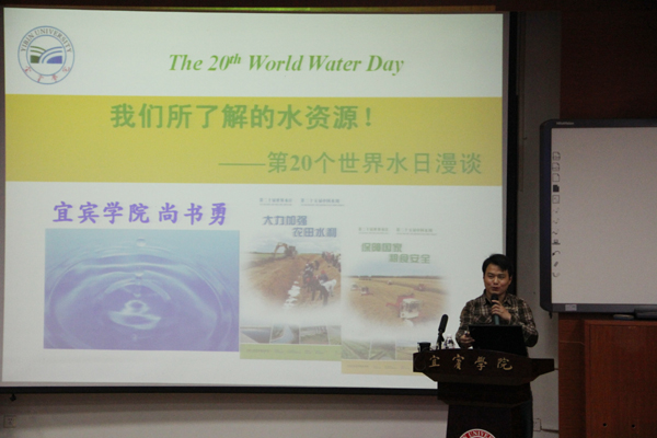 下午2点半,在硕勋楼A座学术报告厅,宜宾化工与轻纺研究中心副主任尚书勇博士为学院师生及“国培计划(2011)”学员做了《我们所了解的水资源》专题讲座。尚博士介绍了世界及中国、四川、宜宾水资源的现状,通过生动形象的案例介绍了水与日常生活、人类健康的关联,提升了大家对水资源的了解与认识。学员积极参与现场互动,提出很多有趣的生活用水问题。