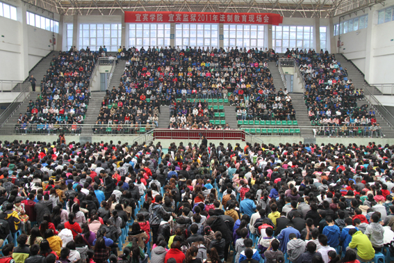 11月16日下午,我校在体育馆举行了隆重的法制教育现场会。该活动在四川省宜宾监狱的协助下,由宜宾学院党委办公室、校长办公室、党委宣传部、学生工作部、马克思主义学院、保卫部、团委、法学院、关心下一代工作委员会联合举办。我校党委副书记刘维鸿、副校长鲁飞、四川省宜宾监狱政治处主任唐健、教育改造科副科长许期忠,我校各相关职能部门负责人出席了法制教育现场会,法制教育现场会由马克思主义学院院长常智敏主持。
