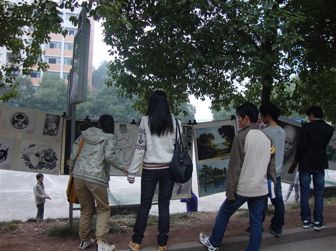 为了丰富校园文化生活,促进校园文化建设,培养大学生审美情趣,由宜宾学院校团委主办的第九届大学生金秋书画展于11月20日至11月24日在玉兰大道和二平台篮球场举行。