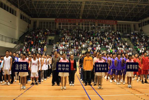 为迎接新一届学子的到来,延续运动精神,由学生工作部(处)、校团委主办,校学生会承办的宜宾学院2010年迎新篮球赛开幕式于10月9日晚在体育馆隆重拉开帷幕。校党委副书记刘维鸿教授和相关部门领导,体育学院院长、本次比赛总裁判长赵丽萍教授,校团委书记罗先凤副教授出席了此次开幕式。