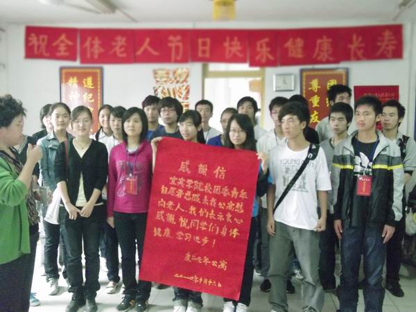 为了让老人们感受到社会的关爱,并进一步倡导志愿者精神。在校团委的指导下,2010年10月16日下午2:30,校青年志愿者总队前往江北骨科医院敬老院,与老人们欢度重阳佳节。