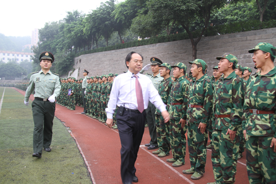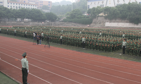 9月25日上午9:00,伴着雄壮嘹亮的国歌声,我校2011级军训汇演在A区田径场隆重举行,至此,为期一周的大一新生军训任务圆满完成。校领导汪明义、刘维鸿、郭洪亮、孟林、鲁飞,中国人民解放军61902部队副团长钟国强中校等领导一同出席并观看了此次汇演。