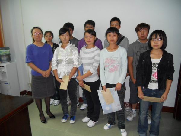 9月27日上午,宜宾学院第七届“山城啤酒”爱心助学金颁发仪式在综合楼团委办公室隆重举行。校团委书记罗先凤和相关老师出席仪式。2010级十名新同学获得“山城啤酒”爱心助学金2000元。