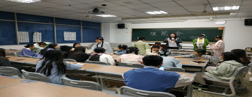 为弘扬优秀传统文化,保护非物质文化遗产传承,增强民族文化自信,素什锦年汉风学社于2021年4月16日晚上17:00,三教102开展缠花会。素什锦年汉风学社社长陈姣、手作部部长刘影、副社长苟兰月和素什锦年汉风学社社员参加本次活动。