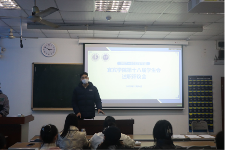 为贯彻落实关于宜宾学院学生会改革和工作的重要要求、加强学生会队伍建设,推动宜宾学院学生会履行职责、发挥作用,我校学生会于2022年12月14日在硕勋楼104举办第十八届学生会述职评议会。临港校区与A区同步进行线上会议,本次活动由学习部干部主持,学生会全体成员参与。