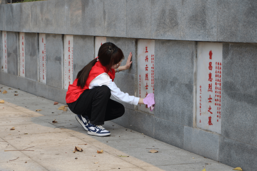 活动在庄重肃穆的氛围中有序拉开。志愿者们在陵园负责人的引领下举行了庄重的默哀仪式,仪式结束后向烈士纪念碑敬献花篮,用清洁工具仔细擦拭墓碑,清扫落叶,以此表达对革命先烈的深切缅怀和崇高敬意。