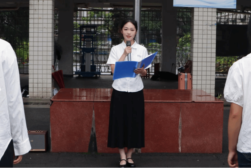 礼毕,宜宾学院教师教育学院钟磬音、数理学院宁益磊作为学生代表走上发言台。钟磬音以“八秩荣光”为引,回顾革命年代先辈们浴血奋战守护国旗的峥嵘岁月,她表示:“每一面五星红旗的升起,都承载着无数先烈的信仰与期盼,我们应当永远铭记这份沉甸甸的历史。”宁益磊则将目光投向新时代,结合当代建设者的实干故事,说道:“从航天突破到科技攻坚,当代中国人正以行动为国旗增辉,这是我们青年一代的榜样与方向。”两位代表共同号召同学们将个人理想融入祖国发展大局,真挚的情感与铿锵的誓言引发全场共鸣,让“强国复兴有我”的种子深深扎根。