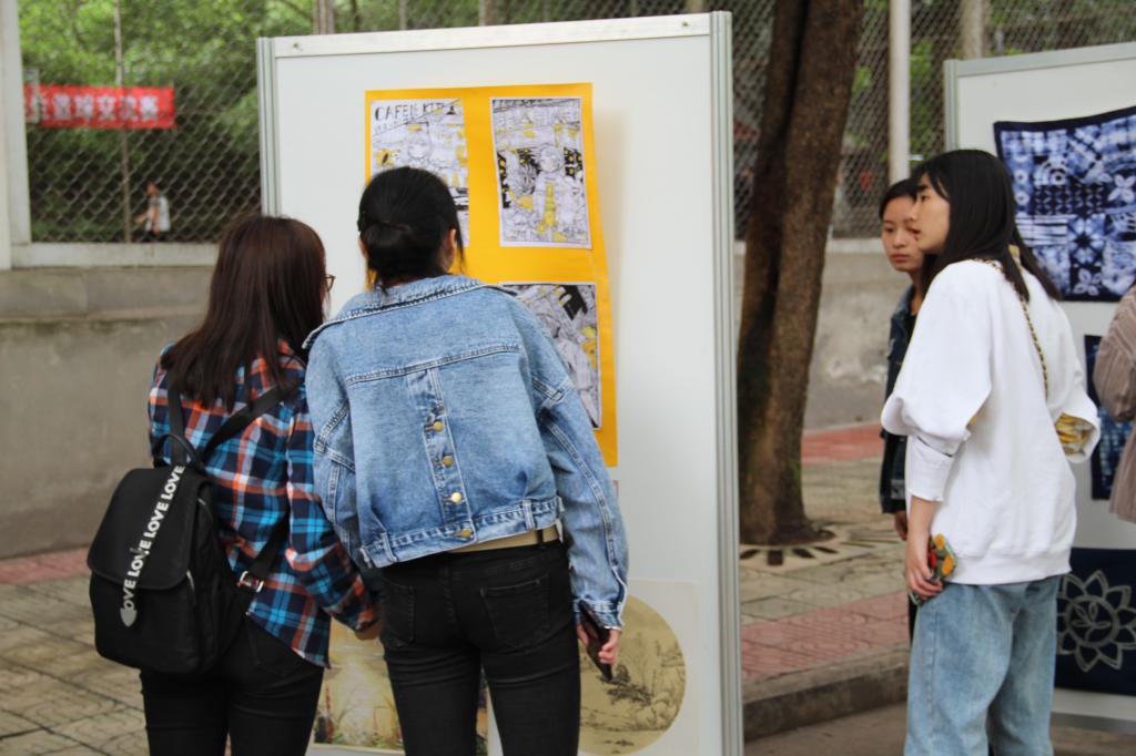 5月3日,“高举五四火炬,点燃艺术青春”手绘艺术设计大赛也相继完成甄选,5月9日,由组委会选出了50份优异作品在A区二平台芳华大道进行展示,一幅幅作品别具匠心,体现出宜宾学院学子们蓬勃的青春气息和昂扬的爱国热情,同学们纷纷表示自己深深受到了五四思潮的洗礼。此次展览将专业艺术与爱国情怀相结合,教育意义显著,促进了学校创新型应用型人才的培养。
