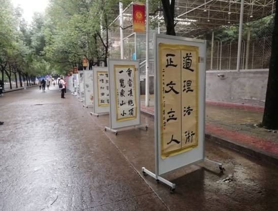 “诠学子之心,忆母校之情”对联祝福语活动于11月17-18日在一平台小树林和二平台芳华大道进行对联现场书写、展示,并赠与校友。现场反响热烈、好评如潮。本次活动旨在以对联、书法的传统文学方式表达师生对宜院的祝福之情,凝聚师生对宜院的深厚情意,为宜宾学院改革发展积蓄力量。